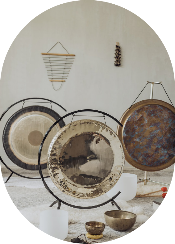 Sound therapy with gongs is a powerful healing modality that utilizes the vibrational frequencies produced by gongs to restore balance and promote well- being. As the gongs are played, their deep and resonant tones penetrate every cell of the body, helping to release tension, reduce stress, and induce a state of deep relaxation. The vibrations also stimulate the body’s natural healing processes, supporting physical, emotional, and energetic healing.